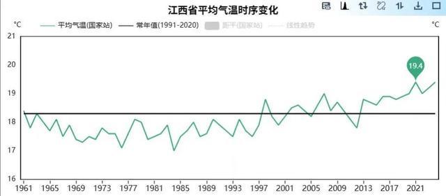 记者注意到,从气象统计资料来看,自2013年起,江西年平均气温已连续12年超过了常年平均气温(18.3℃)。