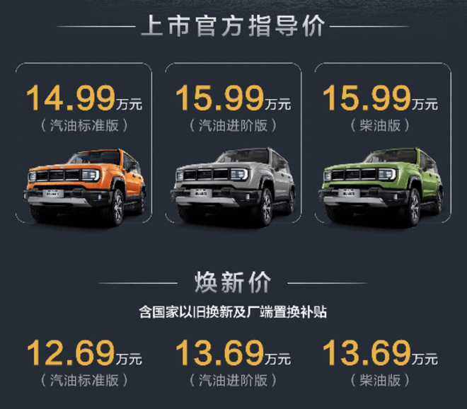 7月21日报道 2026款北京越野BJ40燃油于日前正式上市,新车共推出3款车型,售价14.99-15.99万,焕新价12.69-13.69万元(叠加国补和厂端置换后)。同时,为了纪念中国越野60年和中国摇滚40年,BJ40燃油还特别推出两款纪念版车型。BJ40燃油越野60年纪念版,官方指导价16.6566万元,限量60台;BJ40燃油摇滚40年纪念版,官方指导价为16.6566万元,限量40台。