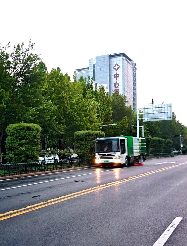 积水、泥污清理完毕后,按照“人工+机械”方式,利用高压冲洗车或大型洗扫车对道路进行冲洗作业,保障过往车辆和行人安全通行。道路通行后,人员还对雨水篦子积存垃圾、道路上断枝落叶等垃圾进行清理收集,为后续降雨顺利排水进行提前准备。同时,对果皮箱、垃圾桶等城市家具也进行了全面细致的清洗擦拭,全方位提升城市形象。