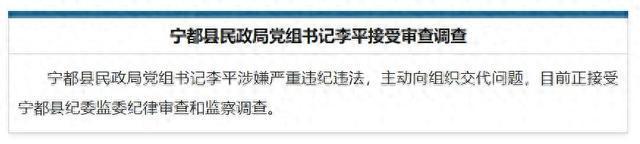 主动向组织交代问题,江西宁都县民政局党组书记李平被查 访客 2025-07-24 15:56:02 46766 抢沙发 默认 据清廉赣州消息:宁都县民政局党组书记李平涉嫌严重违纪违法,主动向组织交代问题,目前正接受宁都县纪委监委纪律审查和监察调查。 标签: 宁都县 民政局 海报 阅读 QQ 分享 微博分享 微信分享 分享 上一篇三个台风扎堆!今年第9号台风“罗莎”刚刚生成! 下一篇娄烨回应被指涉职务侵占上千万:造谣,诽谤!将以法律方式维护权利,并将追究法律责任 三个台风扎堆!今年第9号台风“罗莎”刚刚生成!上一篇 娄烨回应被指涉职务侵占上千万:造谣,诽谤!将以法律方式维护权利,并将追究法律责任下一篇 相关推荐 宁都县民政局 上海夜店现场结婚登记传闻引热议,黄浦区民政局澄清,领证须走正规流程,夜店现场无登记服务 2025-11-04 汪峰森林北再投资成立公司,经营范围包含文艺创作、电影摄制服务等 2025-07-08 发表评论取消回复 快捷回复: 评论列表 (暂无评论,46766人围观)参与讨论 还没有评论,来说两句吧...