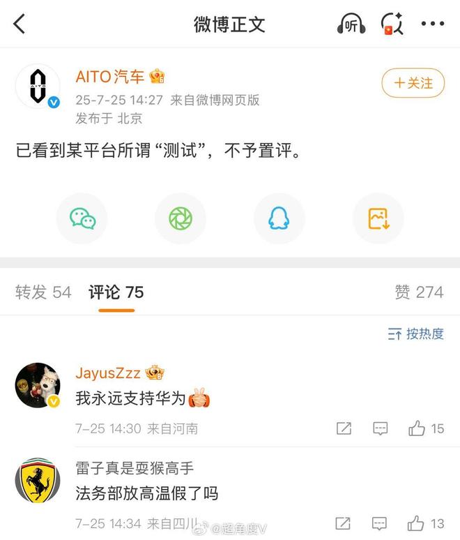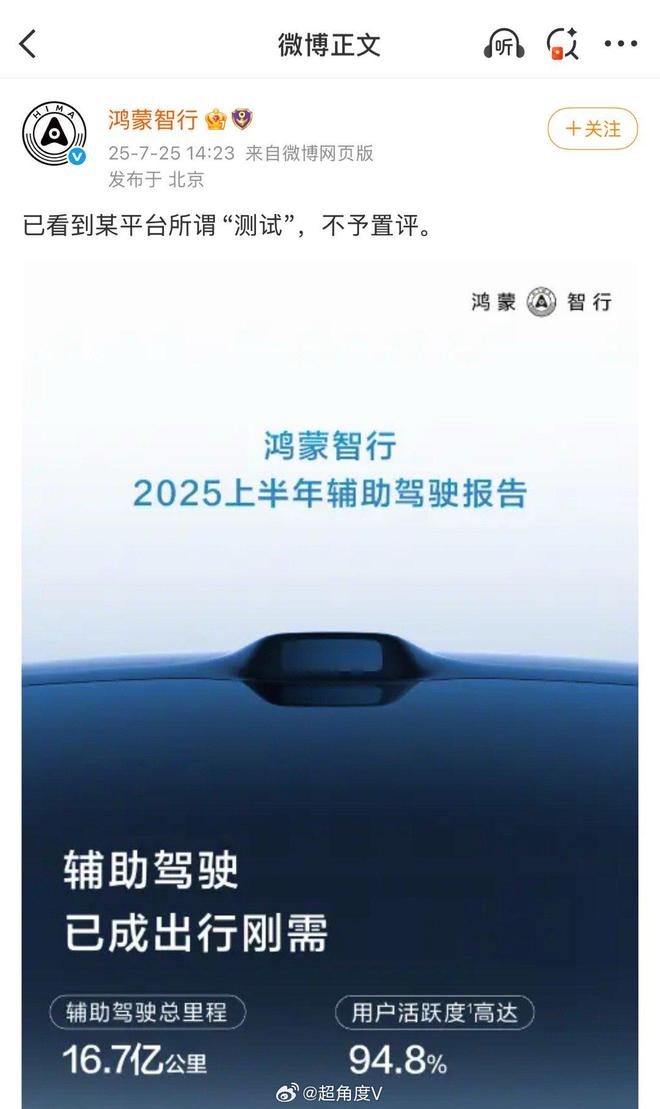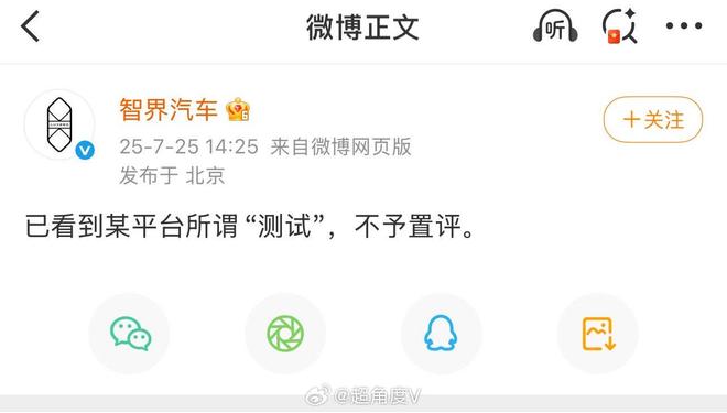 鸿蒙智行、问界以及智界回应懂车帝测评:不予置评 访客 2025-07-25 15:34:00 75619 抢沙发 默认 7月25日,针对近日引发争议的懂车帝测评,鸿蒙智行、问界以及智界均回应称,“已看到某平台所谓‘测试’,不予置评”。 标签: 鸿蒙 近日 海报 阅读 QQ 分享 微博分享 微信分享 分享 上一篇泡泡玛特王宁央视专访:谈饥饿营销争议、谈北漂、谈竞争,预告Labubu新品 下一篇特斯拉陶琳回应懂车帝测试:安全高于排名 泡泡玛特王宁央视专访:谈饥饿营销争议、谈北漂、谈竞争,预告Labubu新品上一篇 特斯拉陶琳回应懂车帝测试:安全高于排名下一篇 相关推荐 鸿蒙近日 鸿蒙智行首款MPV智界V9旗舰巨作揭秘 2025-12-10 鸿蒙智行体系化合作启动,五界共建统一服务体系与充电网络 2025-12-09 鸿蒙智行百万台交付预计十几个月完成 2025-12-09 华为Mate X7折叠屏手机重磅开售,智能革新,重塑行业标杆 2025-12-05 华为鸿蒙打通苹果三端,Mac版鸿蒙系统上线App Store,实现文件互传功能 2025-12-03 华为MateBook Fold非凡大师新版本瑞红色亮相,大气瞩目 2025-11-21 华为Mate 80 Pro Max实测,余承东证实屏幕太阳下清晰可见 2025-11-21 华为Mate80正式定档,全新鸿蒙体验下的应用表现如何?深度解析! 2025-11-18 发表评论取消回复 快捷回复: 评论列表 (暂无评论,75619人围观)参与讨论 还没有评论,来说两句吧...