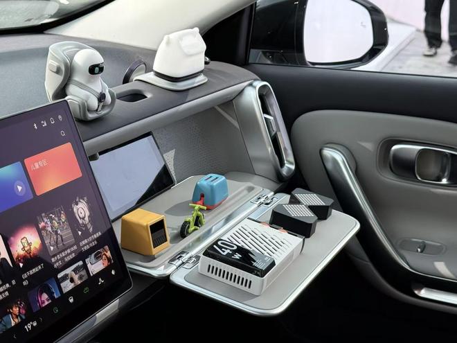 零跑B01沿用了B系列首创的"百变副驾空间"设计,通过6个魔术拓展孔与1个矩形凹槽,可自由组合折叠桌板、手机支架、储物盒、水杯架、挂饰等配件,适配办公、娱乐、收纳等多场景需求。