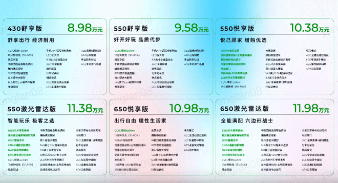 随着B01的上市,零跑将进一步完善其“B+C+T”产品矩阵,覆盖从入门级到高端市场的全场景需求。零跑B01标志着零跑正式进军10-15万元级纯电轿车市场,与特斯拉Model 3、比亚迪秦等车型形成直接竞争。新车的上市价较同级别合资品牌及新势力车型更具性价比优势,同时通过越级配置(如650km续航、激光雷达)和智能化功能,为年轻消费者提供“高配置、低门槛”的出行选择