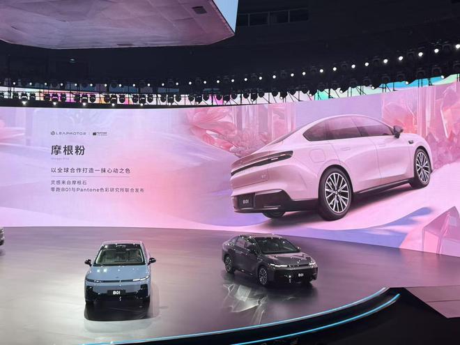 新车推出了8种车身颜色,新亮相的"摩根粉"是零跑与国际知名色彩机构——Pantone潘通共同发布的全新配色。摩根石因含有微量锰元素,金属漆面在阳光下呈现跃动的浪漫粉色微光,承载着自信与勇气的美好寓意。