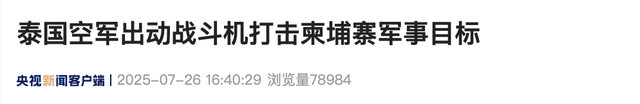 当地时间26日,据泰国公共电视台报道,泰国空军当天出动战斗机打击柬埔寨军事目标。