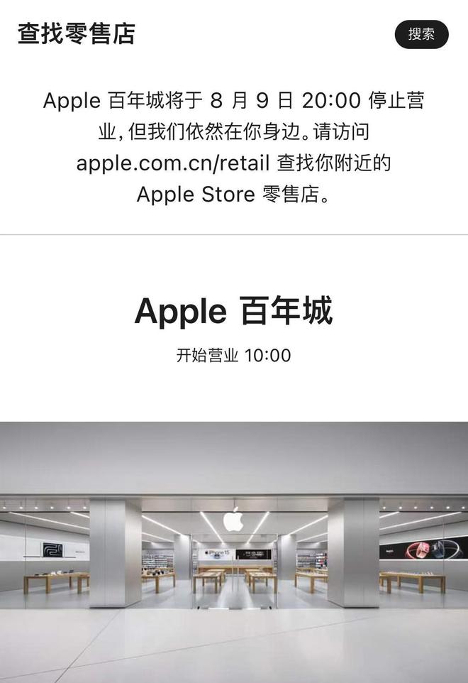 大连首家苹果Apple Store将于8月关闭,已营业10年 访客 2025-07-27 16:03:27 67066 抢沙发 默认 中国官网显示,Apple Store大连百年城店将于2025年8月9日20:00停止营业。据了解,该店2015年10月24日开业,至今开业已有10年。百年城店闭店后,大连还有一家恒隆广场店。 标签: 大连 已有 海报 阅读 QQ 分享 微博分享 微信分享 分享 上一篇卢伟冰晒小米空调拆机:新品竞争力很强 下一篇华为云域名注册、企业邮箱等服务正式停售 卢伟冰晒小米空调拆机:新品竞争力很强上一篇 华为云域名注册、企业邮箱等服务正式停售下一篇 相关推荐 大连已有 蜜雪冰城试点城市早餐新尝试 2025-11-28 小米汽车加速扩张,连续两月新增数十家门店 2025-11-01 万达集团所持大连万达商管19.7亿股权被冻结 2025-08-30 一高校被曝全体教职员工停发工资?校方回应→ 2025-08-24 冷雪峰已任大连市委常委、金普新区(大连开发区)党工委书记 2025-07-28 大连万达商管及其法定代表人被限消 2025-07-10 铁路穿村而过已有17人被火车撞身亡 官方回应:基本属实 2025-05-14 发表评论取消回复 快捷回复: 评论列表 (暂无评论,67066人围观)参与讨论 还没有评论,来说两句吧...