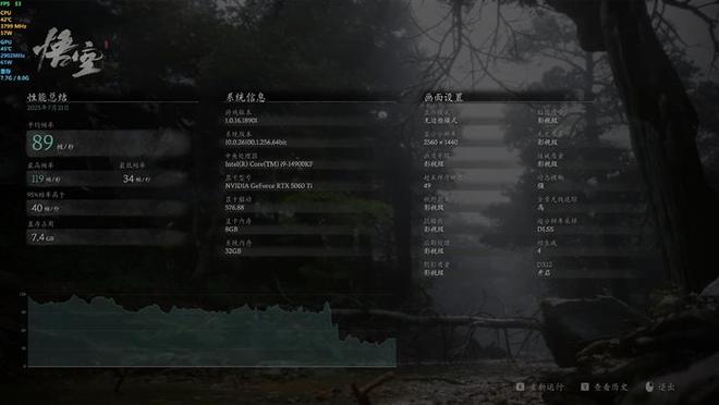 《黑神话·悟空》在开启DLSS 4最高的4X级别多帧生成时,2K分辨率下平均帧率为89,1080P分辨率下平均帧率为101。