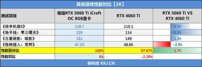 铭瑄GeForce RTX 5060 TiiCraft电竞之心 OC显卡8GB和16GB两个版本都有提供,对于更喜欢老游戏的玩家或者仍在使用1080P屏幕的用户来说,8GB版本的性价比极高。但对于追求新游戏的发烧玩家,更应该选择16GB版本,虽然贵了一点,换来的更加充裕的16GB显存会让铭瑄GeForce RTX 5060 TiiCraft电竞之心 OC显卡的性能发挥更加彻底。铭瑄RTX 5060 Ti iCraft OC 8GB显卡评测:主流玩家的电竞之心 8GB显存性价比高 2K游戏轻松流畅