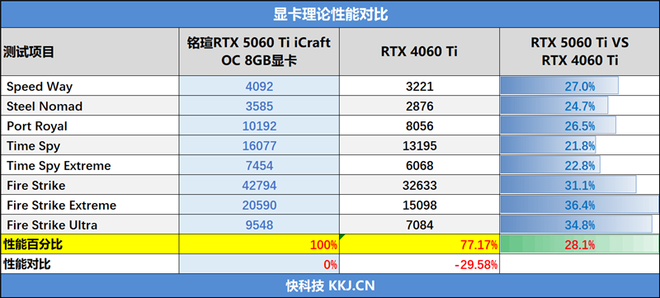 三、理论性能测试:比RTX 4060 Ti提升超过四分之一