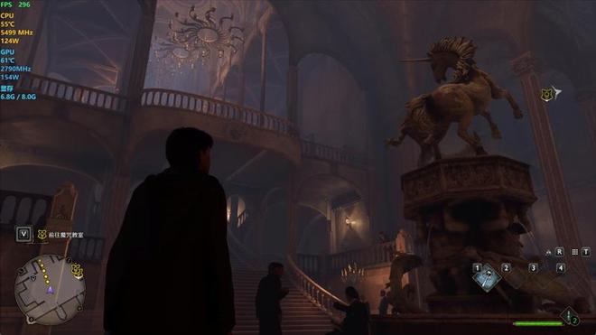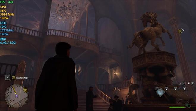 在《霍格沃兹之遗》中,使用超高画质预设,DLSS超分辨率设置为平衡,记录游戏帧数。