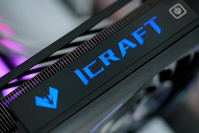 荧光色铭瑄“iCraft”字样和钻石型的Logo的特写