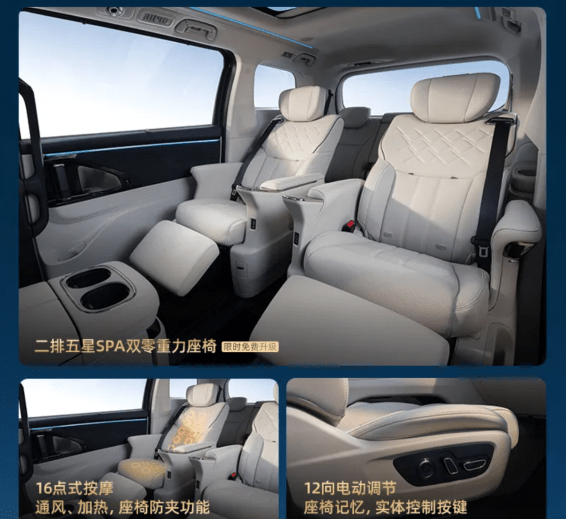 此外,传祺向往M8鸿蒙座舱版限时免费升级第二排DeepSoft双零重力座椅过道版,具备12向电动调节、座椅记忆、实体控制按键、16点式按摩、通风、加热。此外还有16扬声器音响以及智能冷暖9.0L车载冰箱。