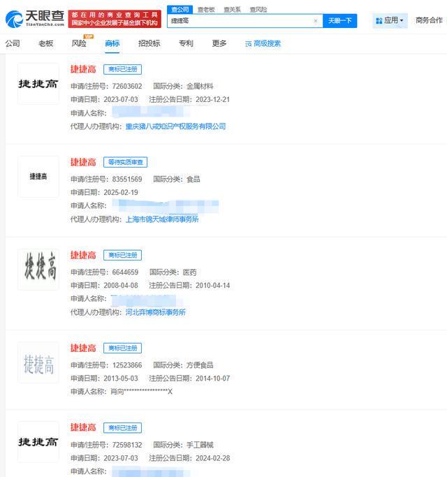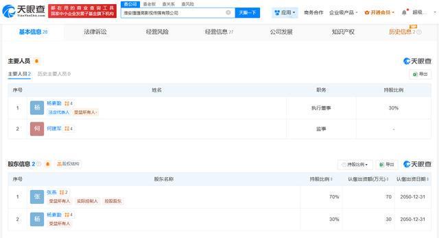 今日,张馨予与何捷迎来结婚七周年纪念日,引发网友热议。天眼查App显示,张馨予(本名张燕)名下关联2家企业,仅淮安捷捷高影视传媒有限公司为存续状态。该公司成立于法定代表人为张馨予母亲杨素勤,监事为何建军,注册资本100万人民币,经营范围为营业性演出、演出经纪、文化娱乐经纪人服务等,由张燕和杨素勤分别持股70%、30%。天眼查知识产权信息显示,“捷捷高”已被多方申请注册为商标,国际分类涉及广告销售、食品、医药等,当前商标状态多为已注册。