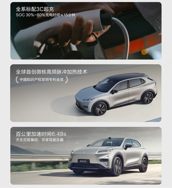 动力方面,深蓝S05全球超长续航版采用单电机后驱形式,搭载最大功率200千瓦、峰值扭矩320牛·米的驱动电机。新车CLTC续航里程620km,3C超充可实现30%~80%充电时间仅需15分钟。其搭载的全球首创微核高频脉冲加热技术,可在-30℃低温环境下使电池温升20℃,动力性能提升50%,充电效率提升15%。