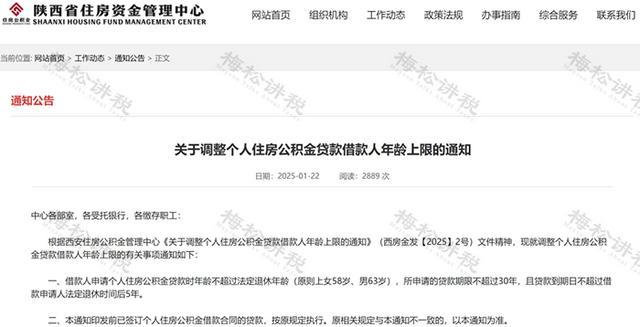 陕西省住房资金管理中心发布《关于调整个人住房公积金贷款借款人年龄上限的通知》。
