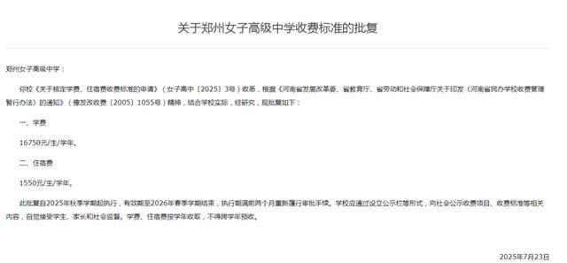 2025年秋季学期起执行!郑州多所高中收费标准确定
