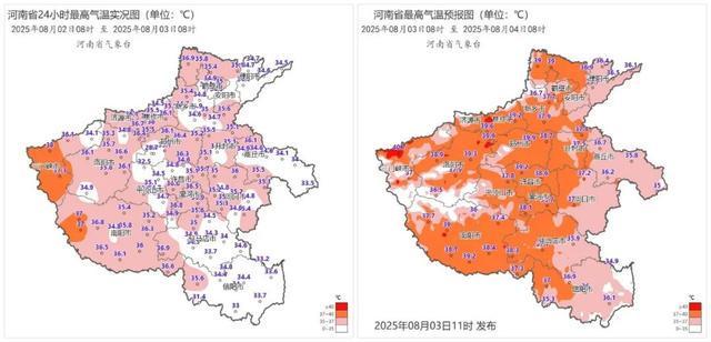 河南省气象台预计,明天到8月5日,沿黄及以南最高气温37℃以上,中西部、西南部部分县市可达40℃。