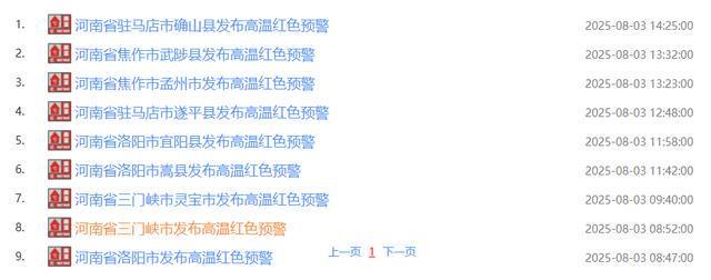 高温红色预警信号9个