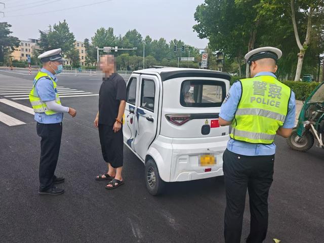 执勤民警坚持教育与处罚并重,向驾驶人宣传电动三、四轮车需登记上牌、持证驾驶,并警示违法载人、闯红灯等行为极易引发交通事故。