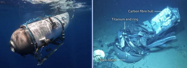 (潜水器事故前后对比,来源:海洋之门、美国海岸警卫队)