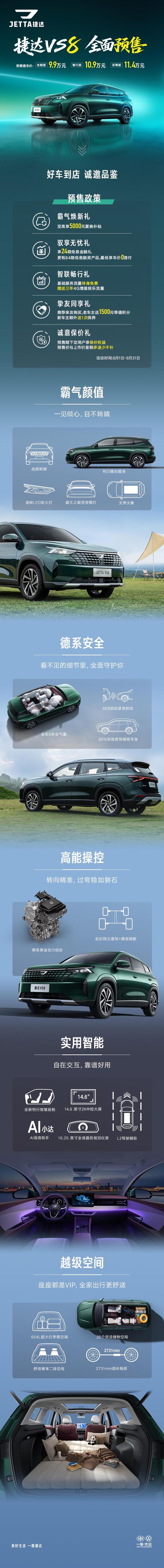 捷达VS8 9.9万起开启预售 德系品质+国产价格