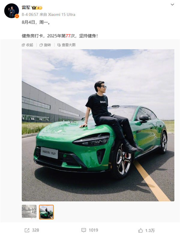 雷军对健身的坚持,在社交媒体上早有体现。他经常分享过自己的健身日常。