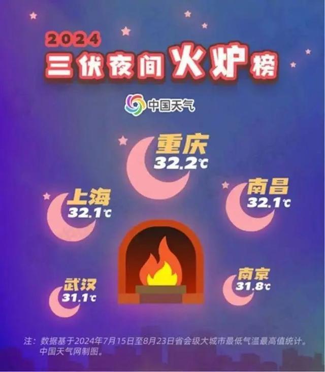 1961年到2024年的气象资料显示,南昌、重庆、上海、杭州等地最低气温达到30℃或以上的天数正在明显变多。2000年之前,这些城市最低气温达到30℃的情况只是零星出现,但2001年以后这一数据增长非常明显,近三年达到顶峰。