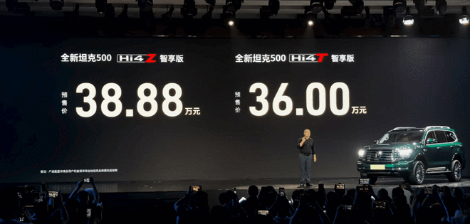 8月11日报道长城汽车旗下中大型硬派SUV—坦克500(参数丨图片) Hi4-T/Hi4-Z于今晚开启预售,坦克500Hi4-Z预售38.88万元,坦克500Hi4-T预售36万元。作为品牌旗下的明星车型,新款车型在延续经典硬派风格的基础上,针对辅助驾驶以及智能座舱体验进行了全面的升级,同时新增敦煌绿专属配色,此次进化也进一步巩固其在细分市场的竞争力。