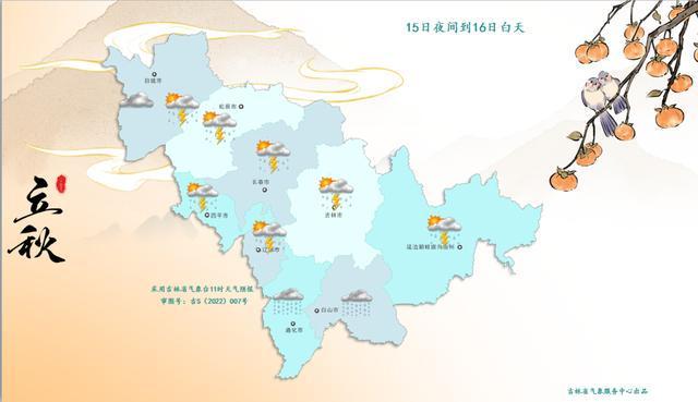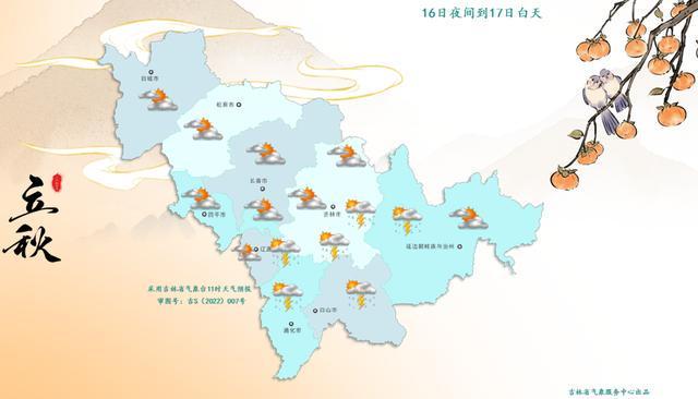 16日夜间到17日白天,全省多云,辽源东部、吉林东部和南部、通化、白山、延边西部、长白山保护开发区有阵雨或雷阵雨。
