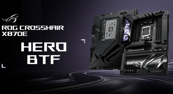 高端背插主板!华硕推出ROG CROSSHAIR X870E HERO BTF:豪华22相供电