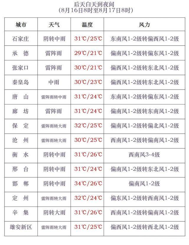 今天下午到夜间,保定、廊坊以北地区和石家庄西北部阴有雷阵雨或阵雨转多云,石家庄、衡水南部、邢台、邯郸多云转阴有雷阵雨或阵雨,其中张家口中南部、承德西部、保定西部、石家庄西北部、邯郸南部等地的部分地区有中到大雨,雷雨时局地伴有短时大风、短时强降水等强对流天气,其他地区多云间晴。