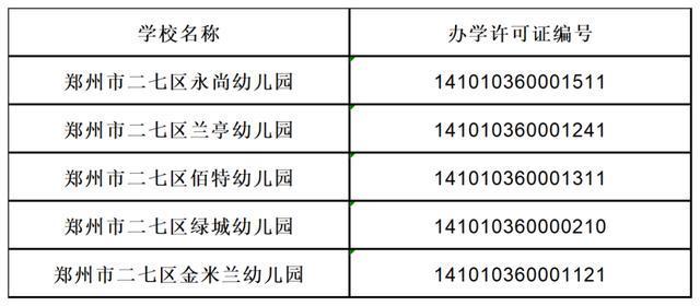 郑州市二七区公告:5所民办幼儿园办学许可证自然废止
