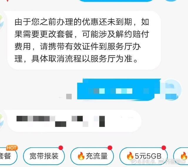 “想把套餐降到最低档,怎么突然冒出个新合约日期?”济南市民张女士的经历透着蹊跷。前几天,她收到运营商短信,告知2025年9月1日合约到期,本有换号意向的她,打算先转成8元最低档过渡。官方客服起初同意办理,可没多久另一官方客服回电称,她的号码绑定30G流量优惠协议,要到2026年9月1日才到期,拒绝降档。