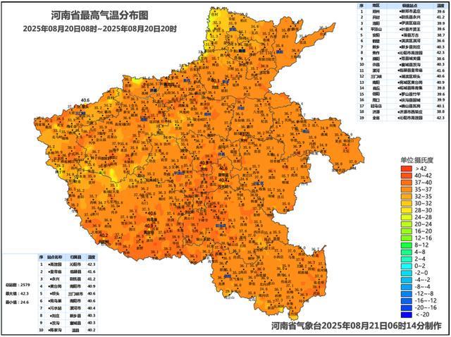 昨天(20日)傍晚到夜里,河南西部尤其是西北部沿山地带遭遇强对流“夜袭”,安阳、新乡部分地区出现暴雨,其中新乡辉县局地出现大暴雨,并伴有雷暴大风。而放眼全省大部,37℃以上的高温天气还在持续,不过40℃以上的极端高温区域已明显缩减。