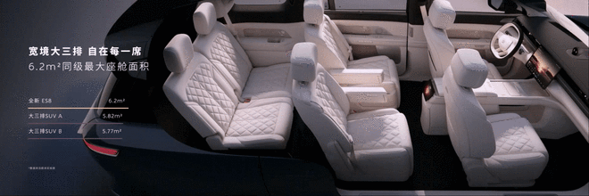 全新ES8在装载空间方面更升一级,全车41出储物空间,第三排放倒后,后备箱容积1561L,可以提供1.41米进深空间,六座版做到全车6人12箱,230L超大前备箱,甚至可以放进一台代驾的折叠电动车。以媲美MPV的乘坐和装载空间体验,全新ES8是要打造MPV平替的纯电豪华SUV了。