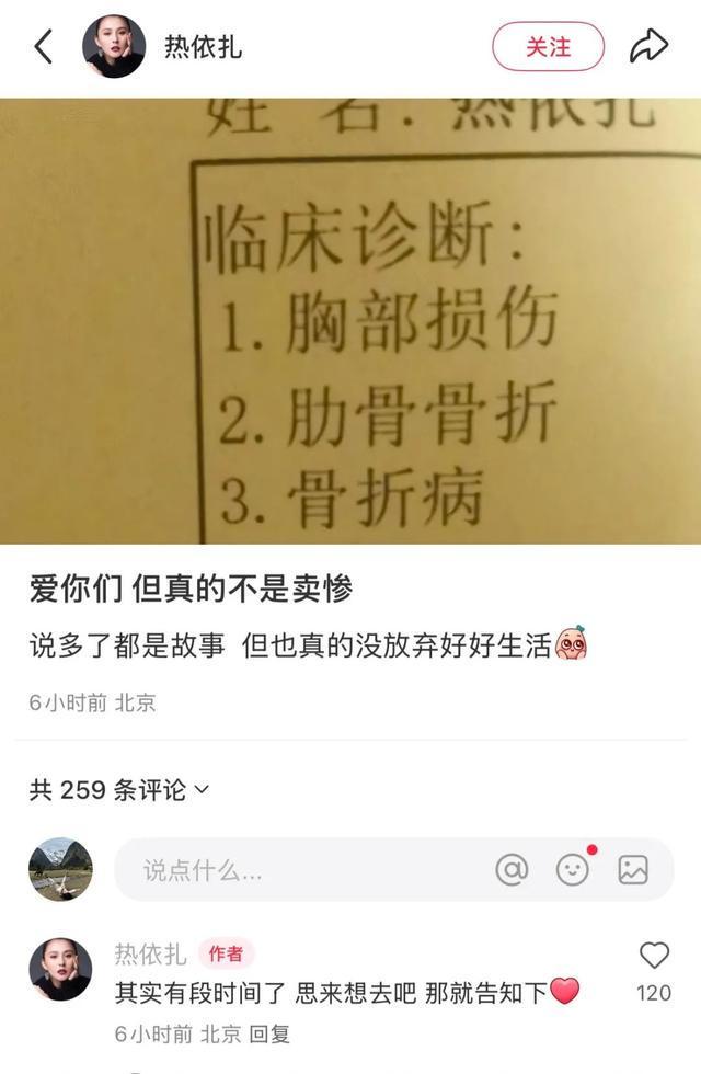 热依扎也在评论区表示:其实有段时间了,思来想去吧,那就告知下。