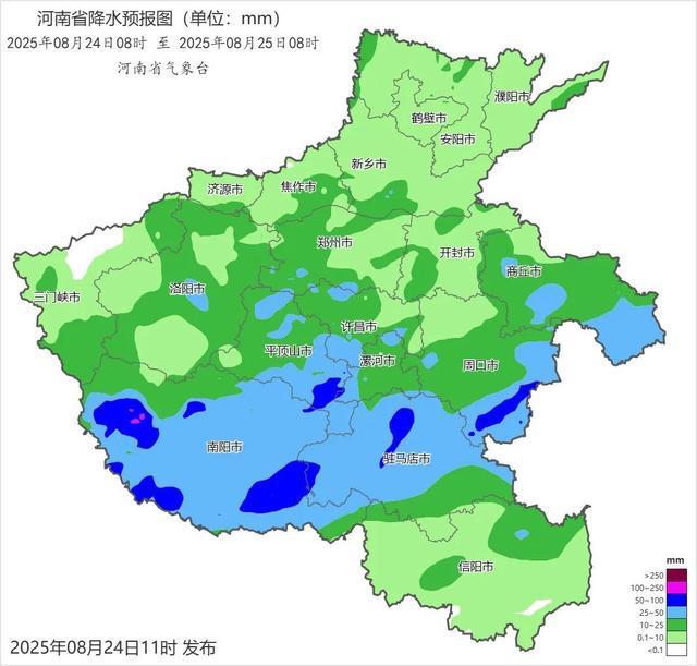 河南省自然资源厅、河南省气象局联合发布地质灾害气象风险预警:2025年8月24日8时至24日20时,河南省地质灾害气象风险预警达到黄色预警的区域为:洛阳西部及北部、东部局部,郑州中西部,平顶山西南部及北部局部,安阳、新乡西部,许昌南部局部,济源示范区、三门峡北部及南部,南阳北部局部,发生地质灾害的风险较高。