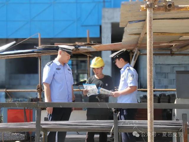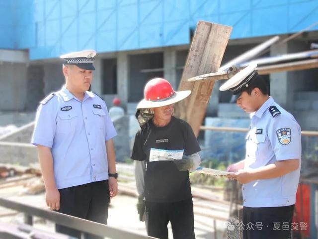 夏邑县公安局交警大队为切实提升建筑工人的交通安全意识,于8月22日组织警力走进辖区建筑工地开展交通安全宣传教育活动。