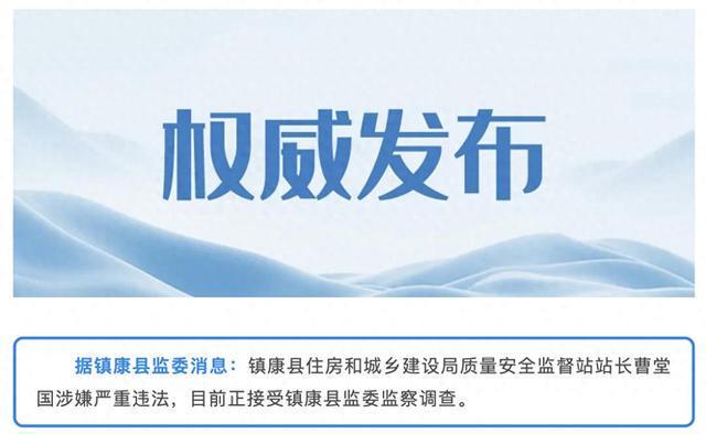 镇康县住房和城乡建设局质量安全监督站站长曹堂国涉嫌严重违法,目前正接受镇康县监委监察调查。