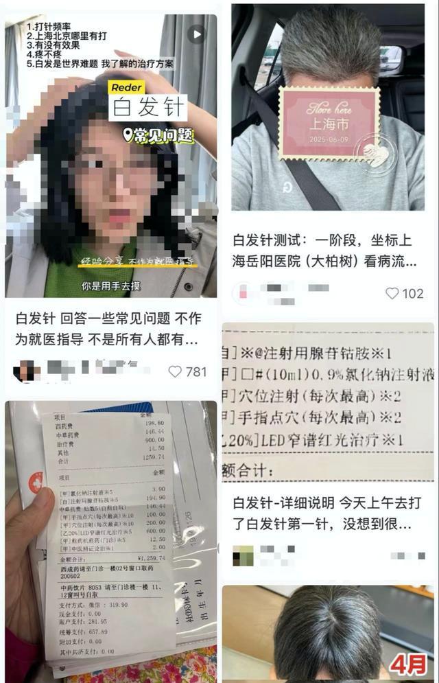 网友分享在上海岳阳医院注射“白发针”的经历。平台截图