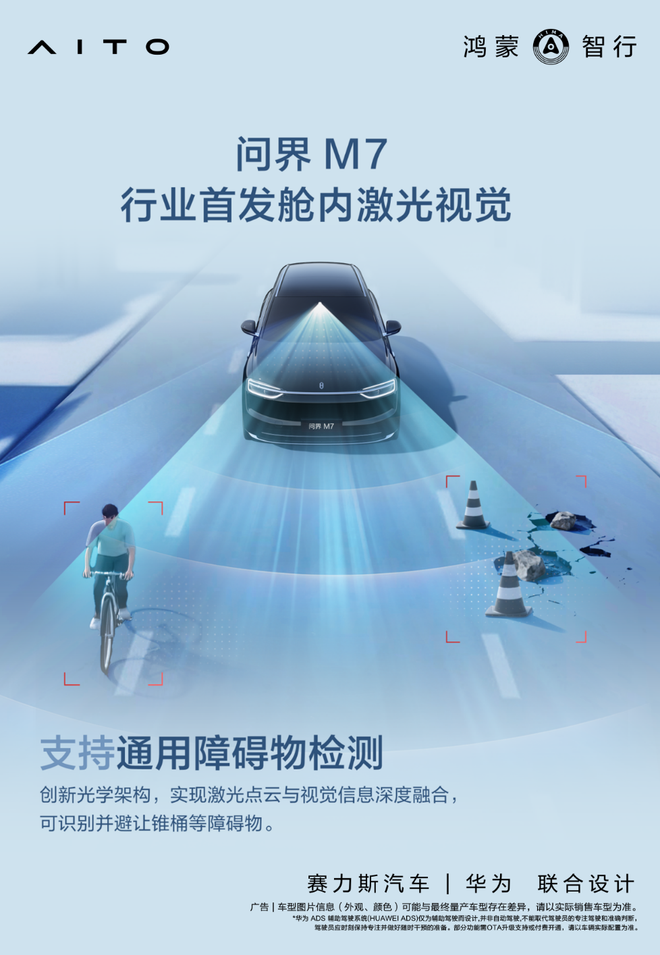 全新问界M7率先搭载行业首发的舱内激光视觉技术,相较传统视觉辅助驾驶方案,展现出难以比拟的优势。该技术以激光点云与视觉信息的深度融合,赋予车辆更强的主动安全能力,不仅能够精准识别常见交通要素,更能感知复杂、非结构化的障碍物,真正实现全天候、全场景的安全守护。