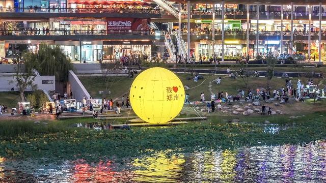 金色的大玉米屹立在如意湖湖边,大玉米楼是郑州璀璨的地标。漫步在如意湖畔,如意湖还有如意龙湖·船说郑州水上演艺,也可以坐船游湖
