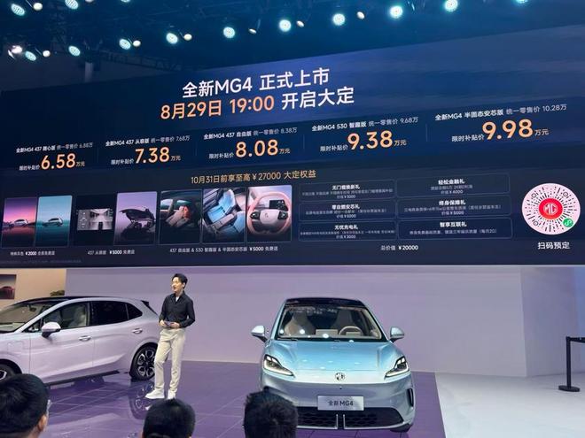 全新MG4在成都车展正式上市,限时售价从6.58万起,这款车型以其卓越的性能和时尚的外观吸引了众多消费者的关注,MG4的推出不仅展现了品牌不断创新的精神,也满足了市场对于高品质、高性价比车型的需求。