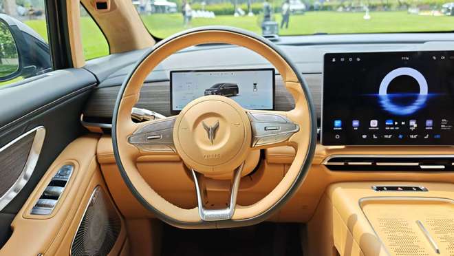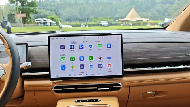 车机部分可以看到,鸿蒙5座舱上车,中控部分是15.6英寸窄边华为智慧屏幕,拥有HDR技术,视觉体验更佳并支持iOS设备投屏。功能上新增HSpace-Link智慧互联,支持平板上车,将来还可支持更多外设如遥控器/游戏柄上车。