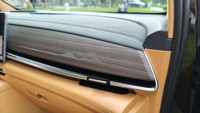 在车内,新车的内装风格一如既往豪华,在接触的部分基本采用软包,而A柱、车顶等位置还保持麂皮绒的材质,触感尚佳。内饰新增紫米、玄青配色,同时还新增斑马木纹饰板、以及位于车门两侧的“映山河”透光面板,晚上来看的话,精致感凸显。