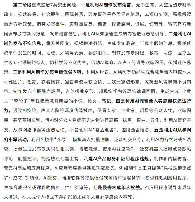 为规范AI服务和应用,促进行业健康有序发展,保障公民合法权益,2025年4月,中央网信办印发通知,在全国范围内部署开展为期3个月的“清朗·整治AI技术滥用”专项行动。