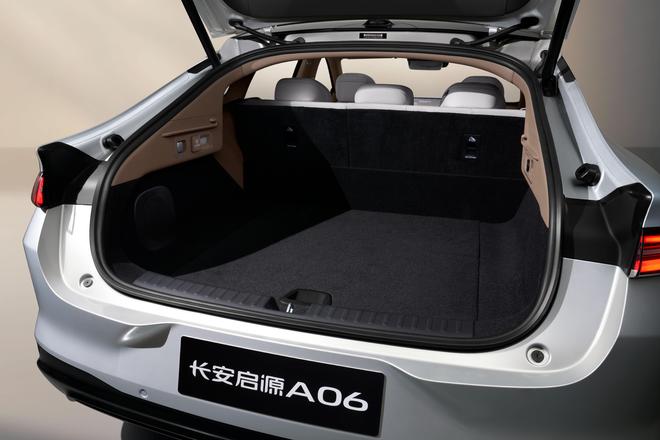 在储物上,启源A06提供了108L的干湿多用前备厢,配备底部排水孔和防水照明灯,656L的后备厢下方有81L的下沉储物箱,前后备厢均支持“拍一拍”开启。此外,新车还配备了B柱隐藏式挂钩、雨伞槽、手套箱等多处储物空间。