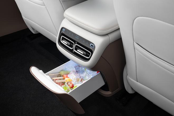 新车还搭载有9.5L的双层车载冷暖箱,下层容积4.6L,温度最低零下6摄氏度,最高50摄氏度。