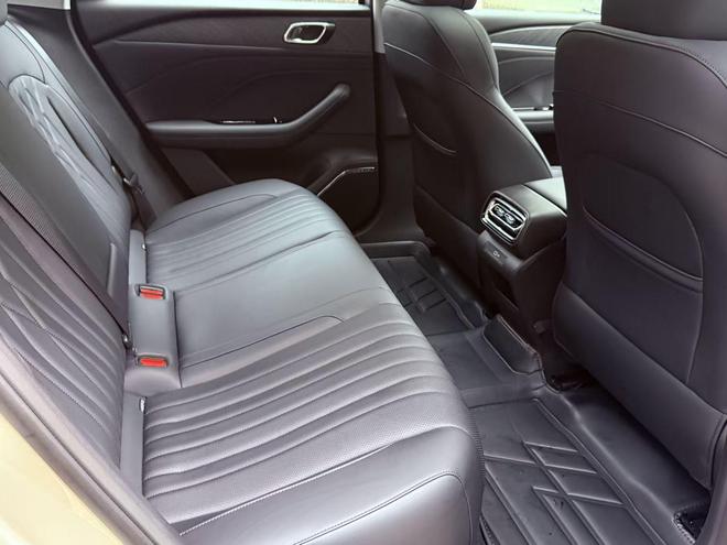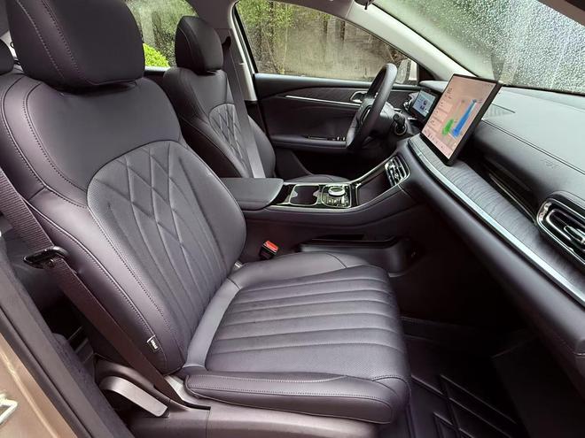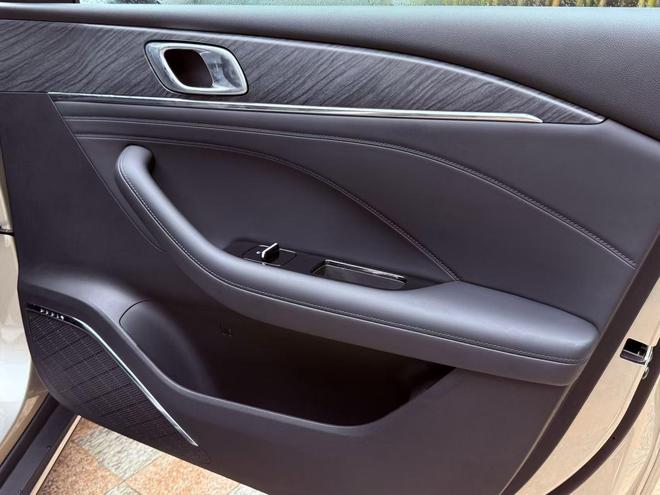 中控台设计很简洁,保留了必要的物理旋钮。空调出风口用了“涟漪回纹”的设计,不影响功能,看着美感。门板、座椅等位置还有精致的绗缝,细节收得干净,不浮夸。