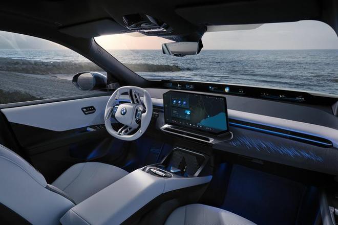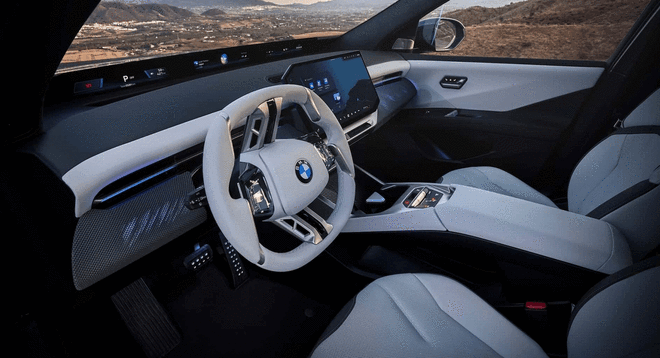 设计上,新世代BMW iX3在传承中创新,经典元素致敬1960年代BMW 1500车型,比如,小比例的经典双肾格栅,只不过这次融入了LED光源,另外还有天使眼大灯、霍氏弯角,而这浑然一体的全新设计语言,极具辨识度。